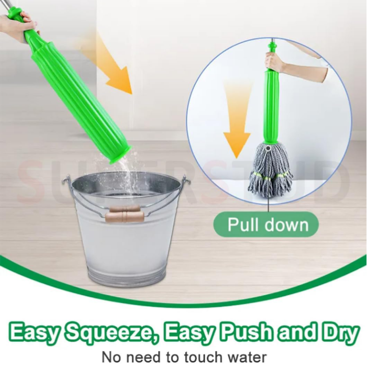 ✅ No More Messy Hands: Twist & squeeze water without touching the dirty mop head.