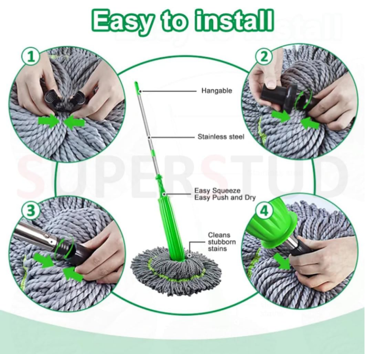 ✅ Mop Material: Premium Microfiber (Ultra-absorbent & durable)